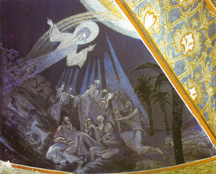 Păstorii sunt pictați cu spatele, așa cum deja ne-a obișnuit Arsenie Boca, nevăzându-se înfricoșarea de pe chipurile lor.