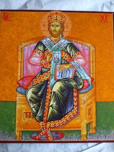 Ca idee, mai jos este o icoană canonică cu Hristos Împărat și Arhiereu.