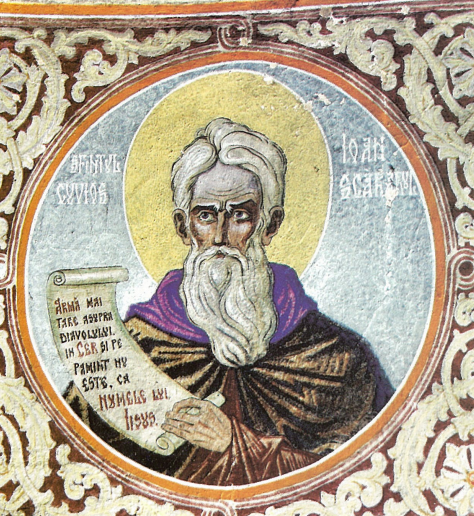 „Sfântul cuvios Ioan Scărarul, desfăşurând un sul cu cuvintele: „Armă mai tare asupra diavolului în cer şi pe pământ nu este, ca numele lui Iisus””.
