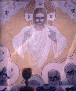 La fel s-au arătat și lui Arsenie Boca, înșelându-l ca să-l picteze pe hristosul său mincinos așa, trecând ca o fantomă prin uși, contrar voinței lui Hristos care prin toate mijloacele și prin toți Sfinții Părinți ne arată că și-a păstrat Trupul chiar și pe tronul dumnezeirii, făcându-L cuvânt și foc dumnezeiesc, mai mult decât sunt îngerii. Nu numai atât dar Sfinților Apostoli le arată trupul duhovnicesc al Său, cu toate dovezile și prin toate mijloacele încredințându-i că este trup înviat (tocmai pentru a ne preda și nouă credința în realitatea învierii). Arsenie Boca, însă, încearcă să ne convingă prin pictură, că Hristos după înviere a fost o nălucă. Sărmanul, hristosul ce i s-a arătat lui în vedenie, chiar așa a fost.