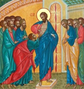 „Și pe când vorbeau ei acestea, El a stat în mijlocul lor și le-a zis: Pace vouă. Iar ei, înspăimântându-se și înfricoșându-se, credeau că văd duh. Și Iisus le-a zis: De ce sunteți tulburați și pentru ce se ridică astfel de gânduri în inima voastră? Vedeți mâinile Mele și picioarele Mele, că Eu Însumi sunt; pipăiți-Mă și vedeți, că duhul nu are carne și oase, precum Mă vedeți pe Mine că am. Și zicând acestea, le-a arătat mâinile și picioarele Sale.